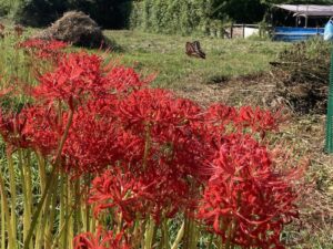 10月に入ってかなり涼しい日が続き、本格的な秋が来たようです。畑の隅に毎年出てくる彼岸花が満開になりました。 秋の味覚の芋類も取れ始めました。今年の中秋の名月は、10/6、お月見のお供に里芋はいかがでしょうか? 畑の隅に